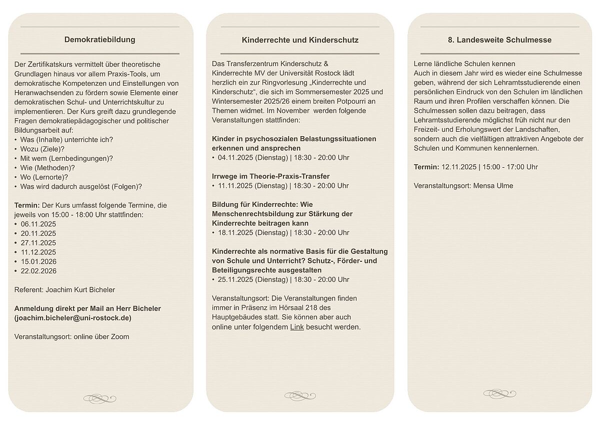 Studentische Hilfskräfte im Bereich Lehrerbildung, ZLB Universität Rostock