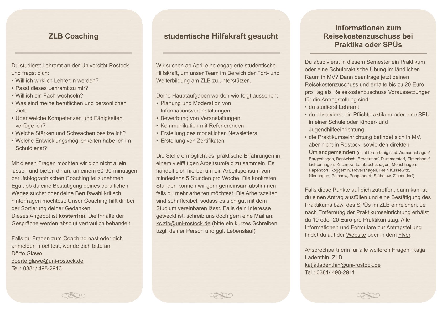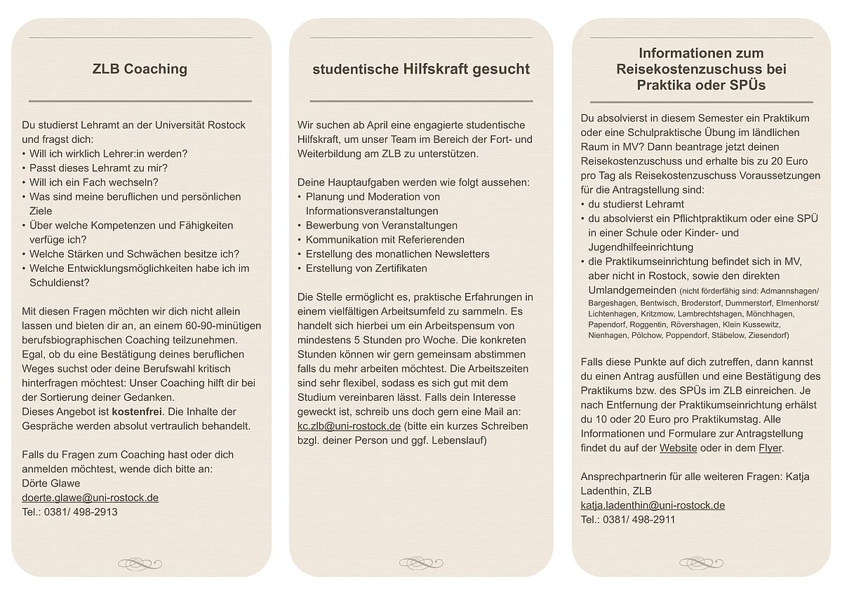 Studentische Hilfskräfte im Bereich Lehrerbildung, ZLB Universität Rostock