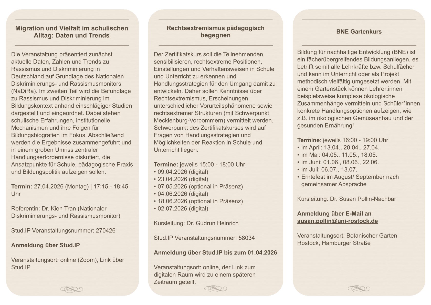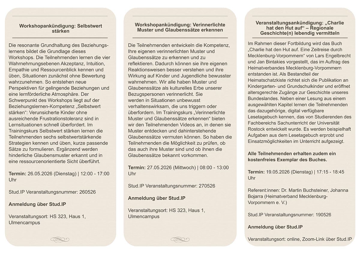 Studentische Hilfskräfte im Bereich Lehrerbildung, ZLB Universität Rostock